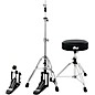 The DW 3000 Series 3-piece hardware pack with single pedal is a dependable upgrade for drummers looking to expand their setup with durable, performance-ready hardware. This pre-configured pack includes a DW 3000 Series single bass drum pedal, a hi-hat stand and a round top throne, all built with all-steel construction for consistent stability and control. The pedal features a dual-chain Accelerator cam for smooth, responsive action along with adjustable footboard angle and a swivel toe clamp for personalized feel. The hi-hat stand offers smooth response with adjustable tension and secure footing for reliable performance. The round top throne provides thick foam padding, a vinyl-covered seat and a sturdy steel tripod base with double-braced legs for comfort during long sessions. Designed for both electronic and acoustic kits, this hardware pack delivers the durability, comfort and precision needed for practice, recording and live playing.